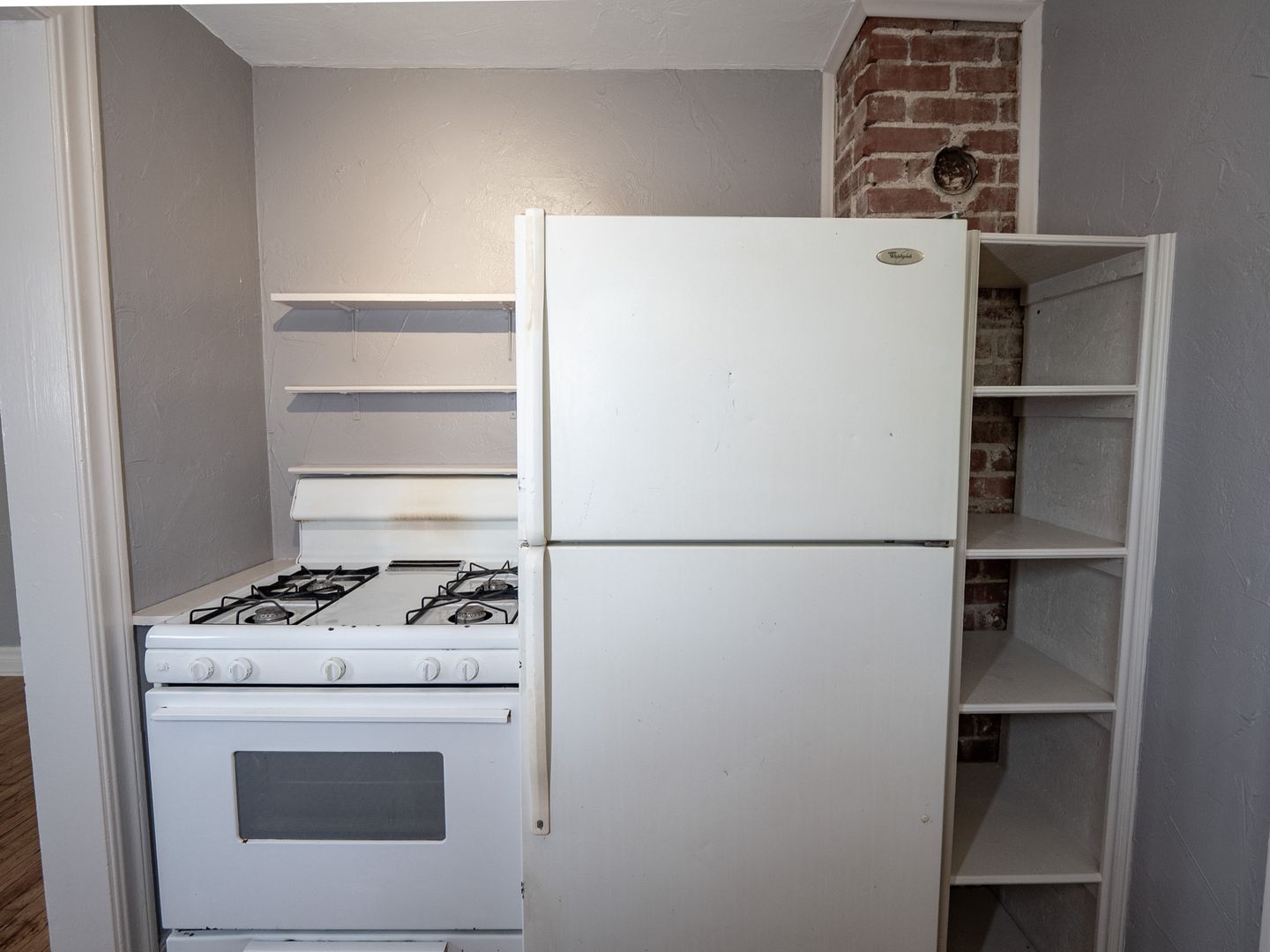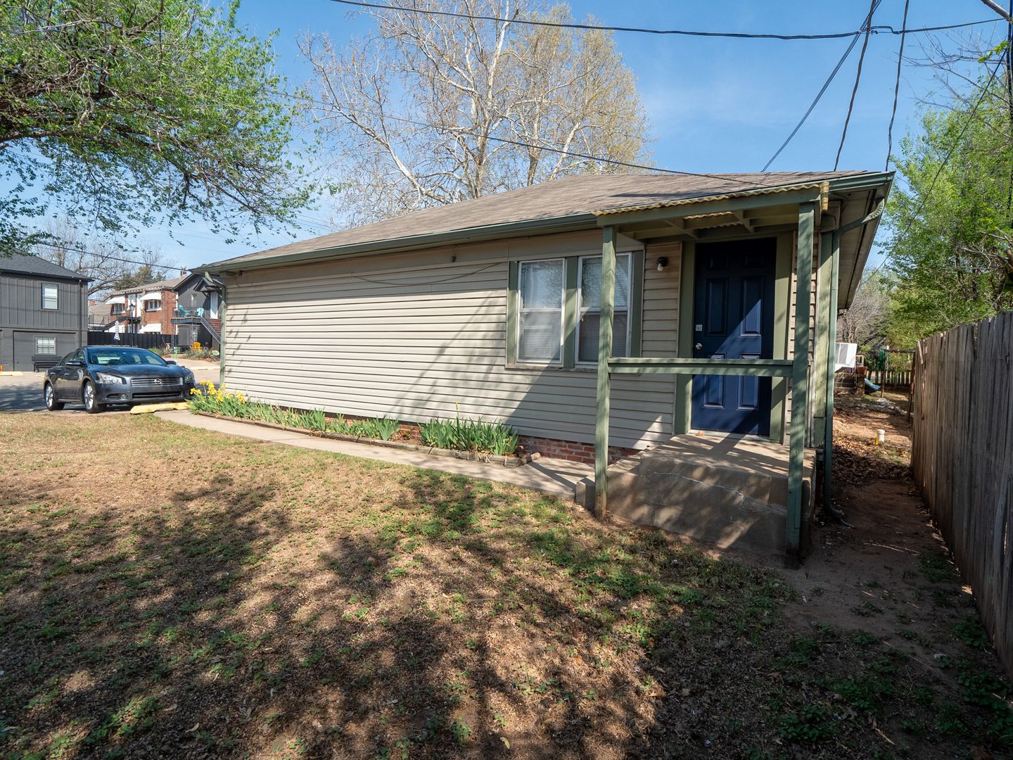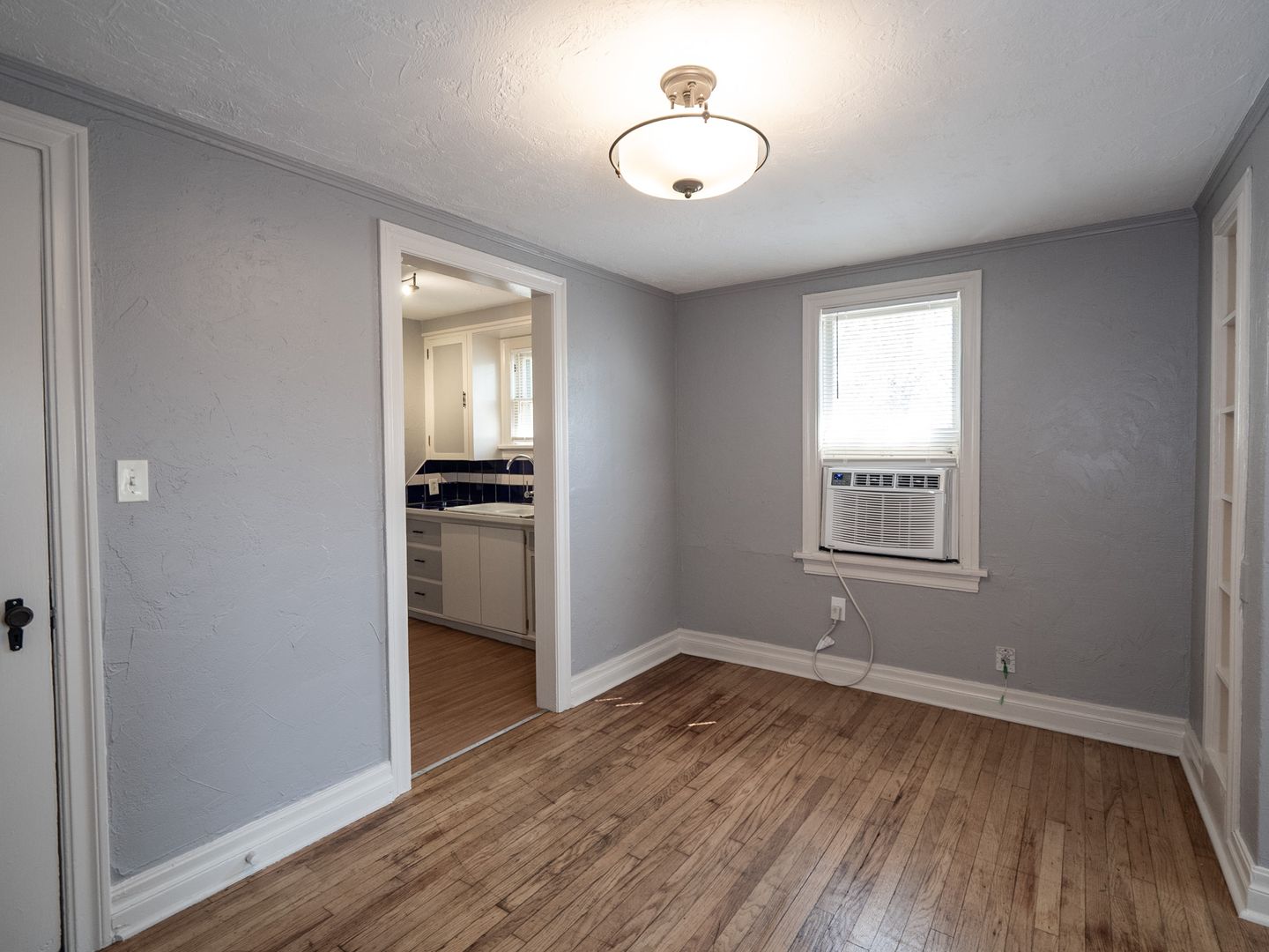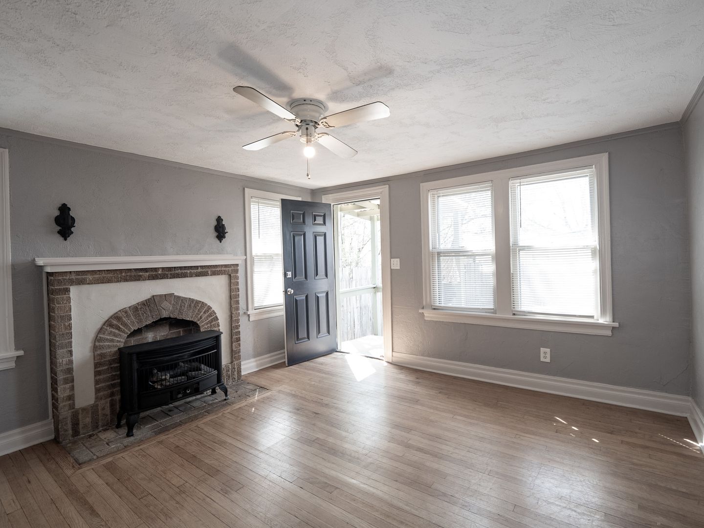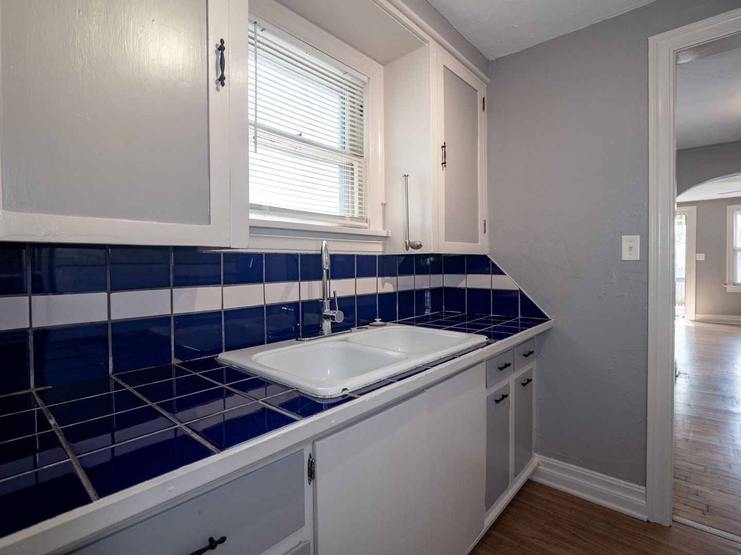 Charming 1 bed, 1 bath back unit available for rent at 2436 NW 12th St in Oklahoma City, full of timeless character and unique details. This cozy space features beautiful original wood floors, exposed brick accents, and a decorative filled-in brick fireplace that adds to the home's vintage appeal, complemented by classic radiator heating. The kitchen stands out with eye-catching blue tile, while built-in cabinets provide both charm and functional storage. Tucked away for added privacy, this unit offers a warm and inviting atmosphere perfect for anyone who appreciates historic character with a touch of personality.